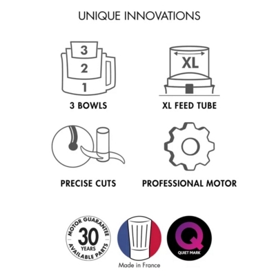 Cuisine System 5200xl has a powerful 1100w commercial quality motor with 30 year guarantee (for normal domestic use)