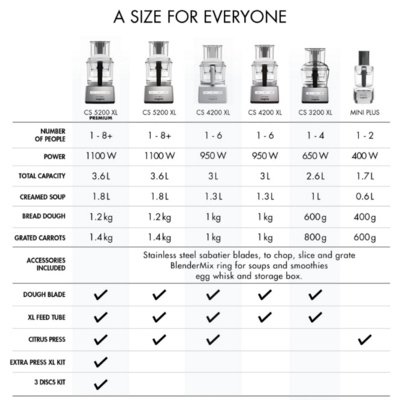 The 5200xl is the Largest Magimix with the extra large feed tube allows large amounts, 1kg carrots or cheese, vegetable preparation to be achieved quickly.