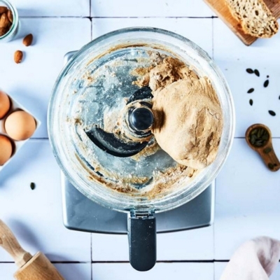 • Normal dough: for faster results, leave the dough to rise or prove at (or slightly above) room temperature. As flour is very light, you may sometimes notice a cloud of flour escaping from the bowl. To avoid this happening, put all the non-liquid ingredients (salt, flour, butter, eggs, etc.) in the bowl before adding the liquid ingredients (water, milk, etc.). Only then switch your food processor on.