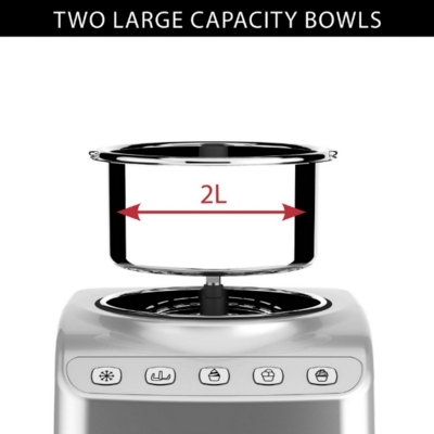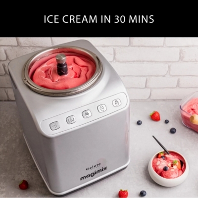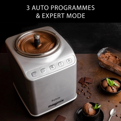 Very simple to use, Manual mode For optimum control, Storage mode Stores ice cream and the right temperature and consitency for 2 hours, Pause mode Allows you to check the consistency of the ice cream Fixed bowl 2 litres, Removable bowl 2 litres, Capacities 1 Litres of ice cream, 1.3 Litres of Sorbet or Granita, Cooling system Integrated.