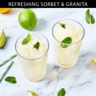 Gelato Italian ice cream mode for a light and abundant ice-cream, Sorbet for a refreshing sorbet, Frozen yoghurt Granita